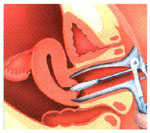 Bei verdächtigen Bezirken wird eine genaue Inspektion mit dem Kolposkop (Vergrößerungslupe, um den Muttermund anzusehen) vorgenommen.